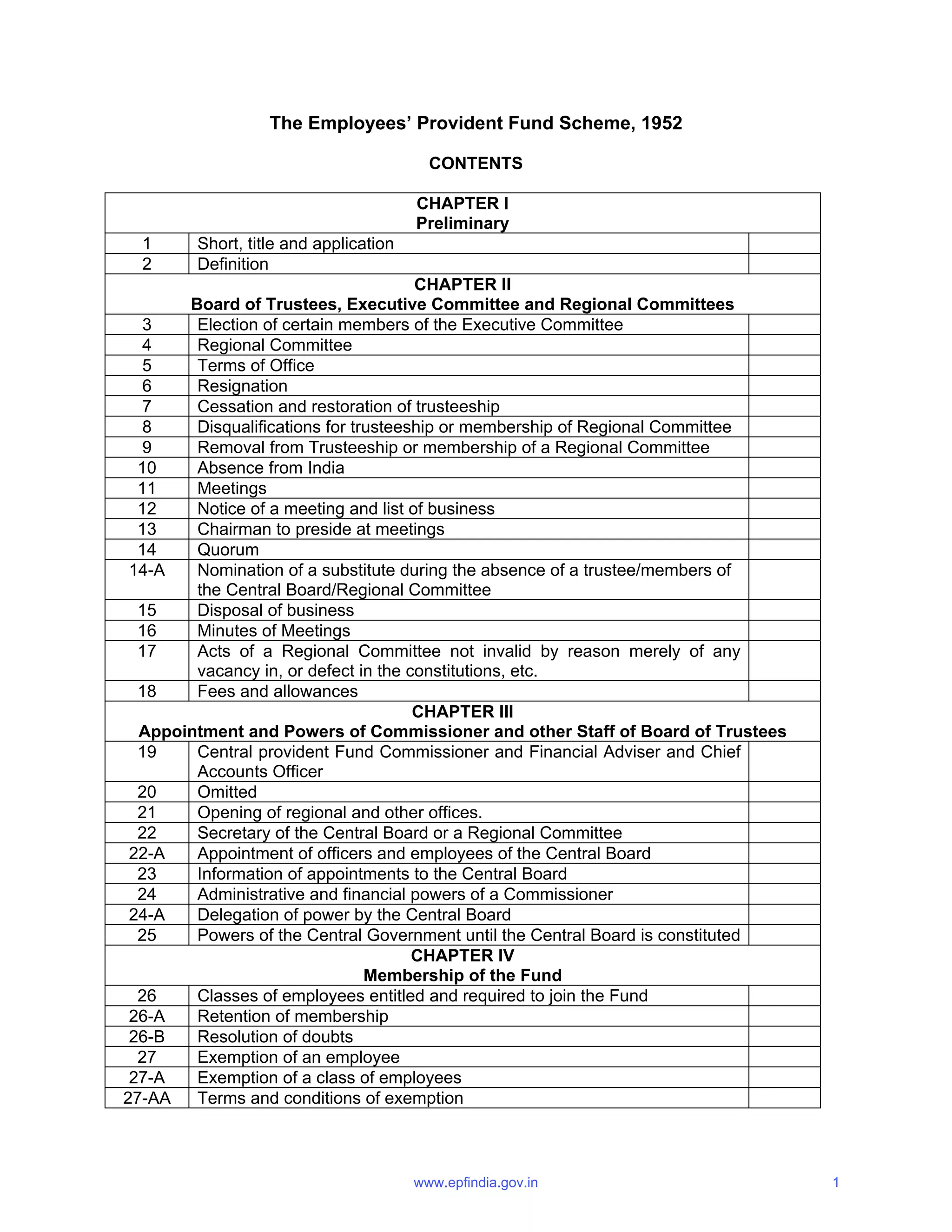 - It defines membership, contributions, withdrawals, payments and other administrative aspects of the provident funds for different types of employees and industries.