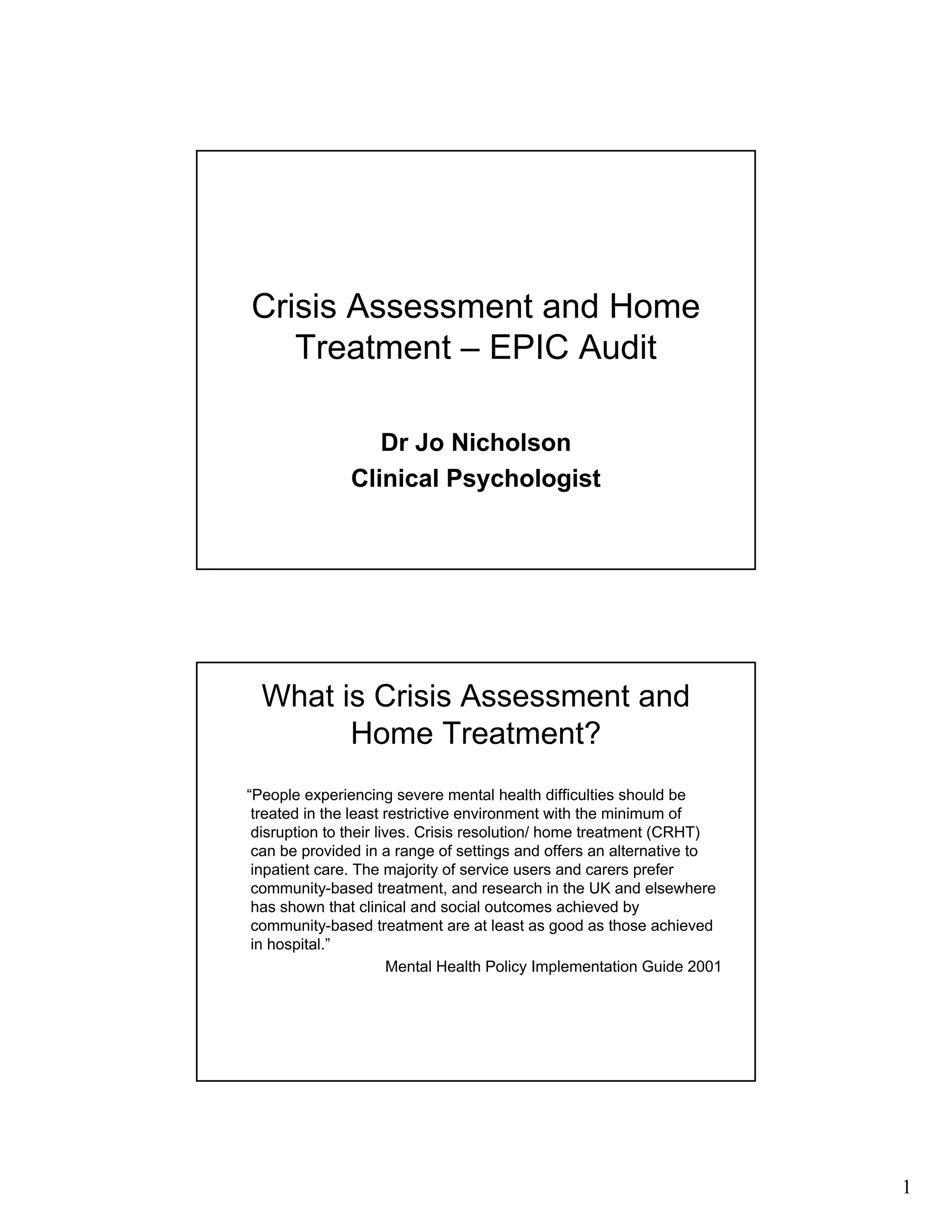 This document summarizes an audit of the Crisis Assessment and Home Treatment (CAHT) service in Sheffield, England. Some key findings include: