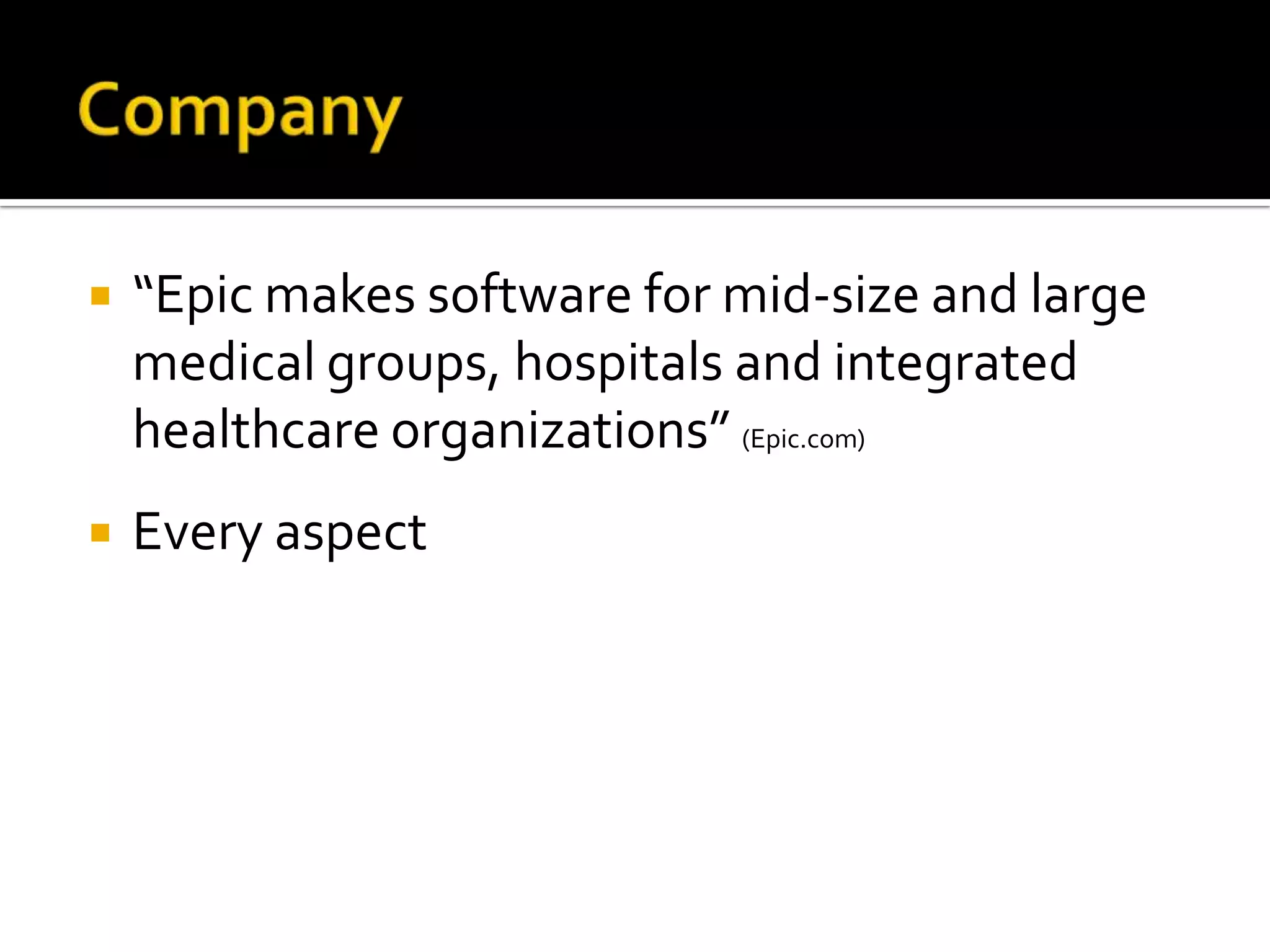 Epic Systems is a healthcare software company founded in 1979 by Judy Faulkner and headquartered in Verona, Wisconsin. As of 2009, Epic employed 3,950 people and generated $650 million in annual revenue serving 240 customers including major healthcare organizations like Stanford, Kaiser Permanente, and Cleveland Clinic. In July 2010, Epic signed a $20 million contract with the University of Michigan Health System to implement their electronic health record system.
