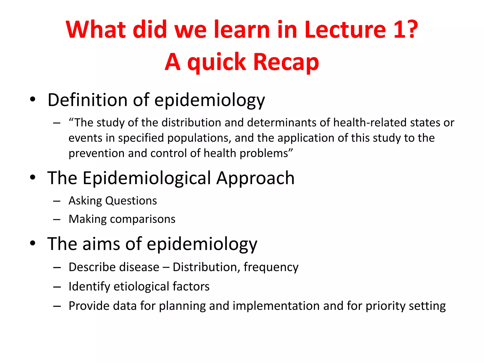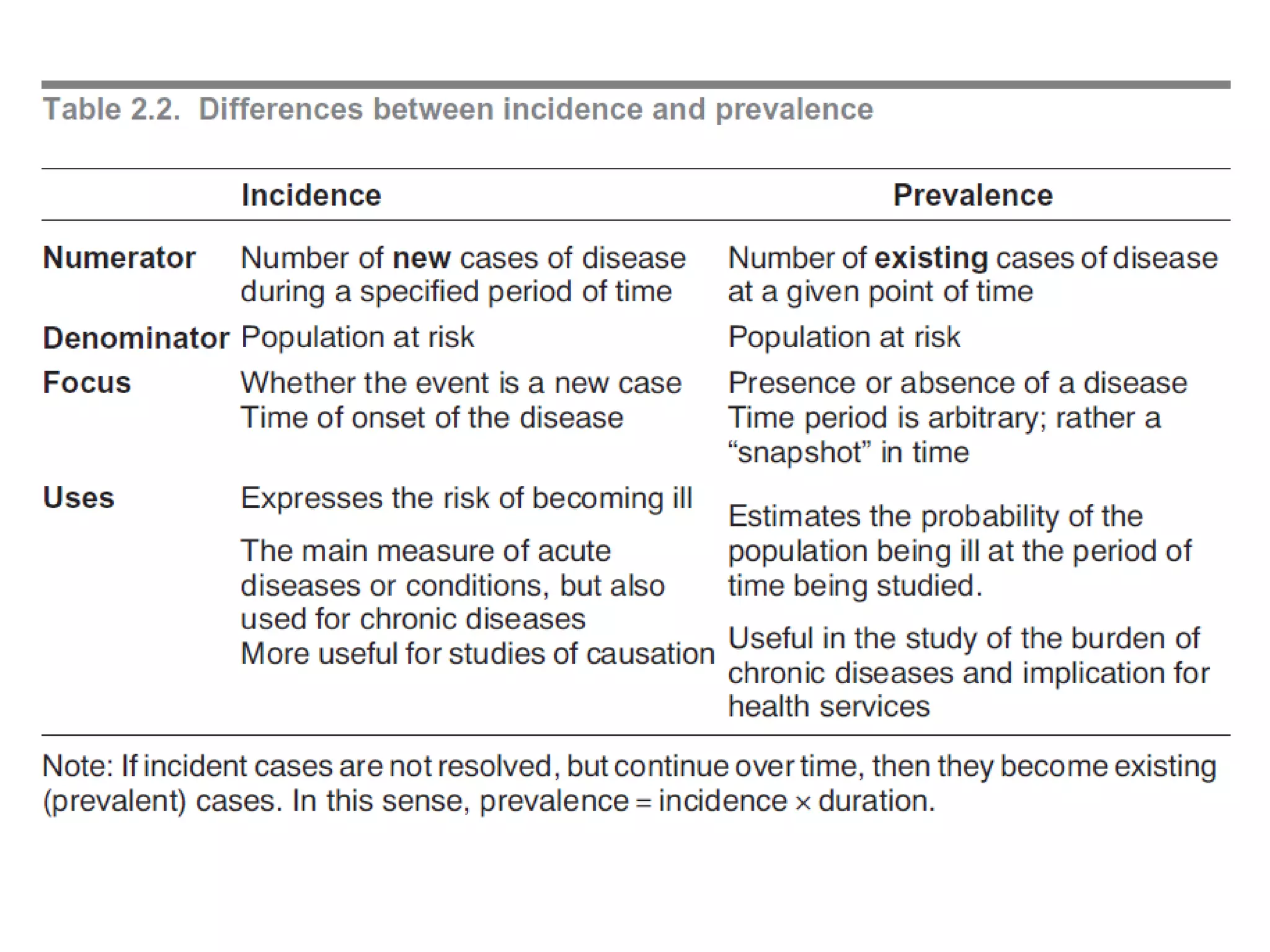This document discusses measuring disease frequency in epidemiology. It defines key terms like incidence, prevalence, population at risk, and rates. Incidence refers to new cases in a specified time period, while prevalence looks at total current cases. Prevalence can be point prevalence (at a point in time), period prevalence (over a specified time period), or lifetime prevalence. The document provides examples of calculating prevalence from population data and discusses how prevalence is used to understand disease burden and plan health services.