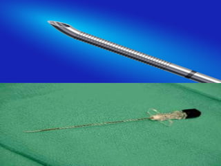 The document details the characteristics and uses of epidural needles, primarily the Tuohy and Crawford needles, along with their mechanisms, components, and safety features. It emphasizes the significance of proper catheter placement and the risks associated with accidental dural puncture. Additionally, it discusses the design of epidural kits, including features of catheters and filters used to ensure effective and safe epidural anesthesia.