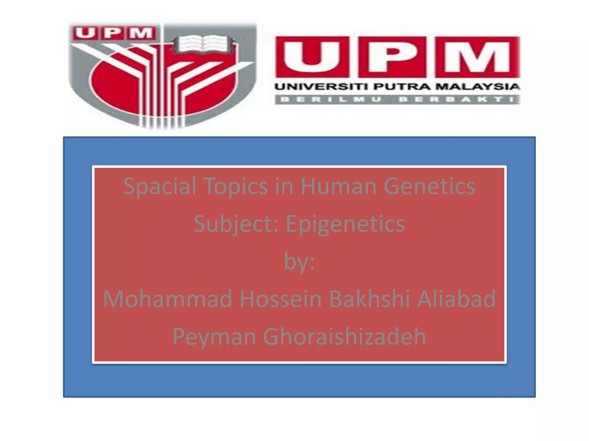Epigenetics involves heritable changes in gene expression that do not involve changes to DNA sequence. The main epigenetic mechanisms are chromatin remodeling, DNA methylation, and histone modification. Environmental factors like smoking, diet, and toxins can influence the epigenome. Errors in epigenetic programming have been linked to diseases. The epigenome responds dynamically to the environment and directs gene expression patterns during development and differentiation.