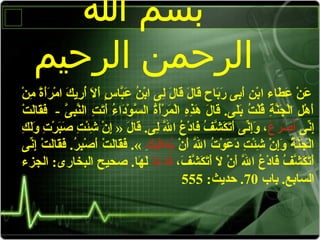 The document discusses how epilepsy is portrayed in modern life. While new technologies have benefited epilepsy diagnosis and treatment, they have not significantly changed public perceptions and understanding. Epilepsy is still frequently stigmatized and associated with notions of madness, evil or possession. However, Islam provided an exception through the Prophet's compassionate response in accepting and helping an epileptic woman without stigma.