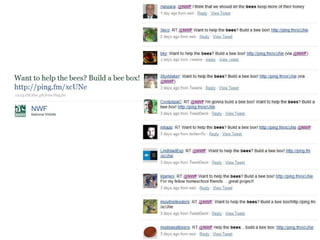 The document discusses strategies for using social media in nonprofit organizations. It emphasizes the importance of listening first to understand audiences before publishing content. Examples are given of nonprofits that improved relationships by actively listening on social media and addressing issues that audiences raised. The document also discusses goals for social media strategies and metrics for measuring results, as well as best practices like emphasizing quality engagement over quantity and making social media part of everyone's jobs.