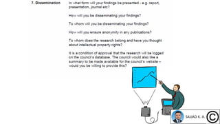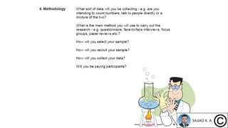 The document outlines the process of writing a research proposal, emphasizing the importance of clarity and structure in sections such as the title, abstract, introduction, problem statement, objectives, methodology, personnel, facilities, evaluation, and budget. Each section must effectively communicate the project's scope, objectives, and methodology while ensuring that it aligns with the interests of potential funding sources. The proposal must also include detailed plans for evaluating the project's success and a dissemination strategy for the results.