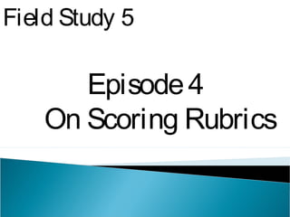 This document outlines a field study examining different types of scoring rubrics used by resource teachers to assess student learning. The study involves: