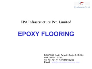 EPA Infrastructure Pvt. Limited specializes in epoxy flooring, providing durability and aesthetic enhancements for industrial floors. The process involves preparing the surface for optimal bonding and applying an epoxy primer, which offers benefits such as reduced maintenance costs, protection from wear and chemical damage, and improved aesthetics. Overall, epoxy flooring extends the life of concrete surfaces while facilitating easier cleaning.