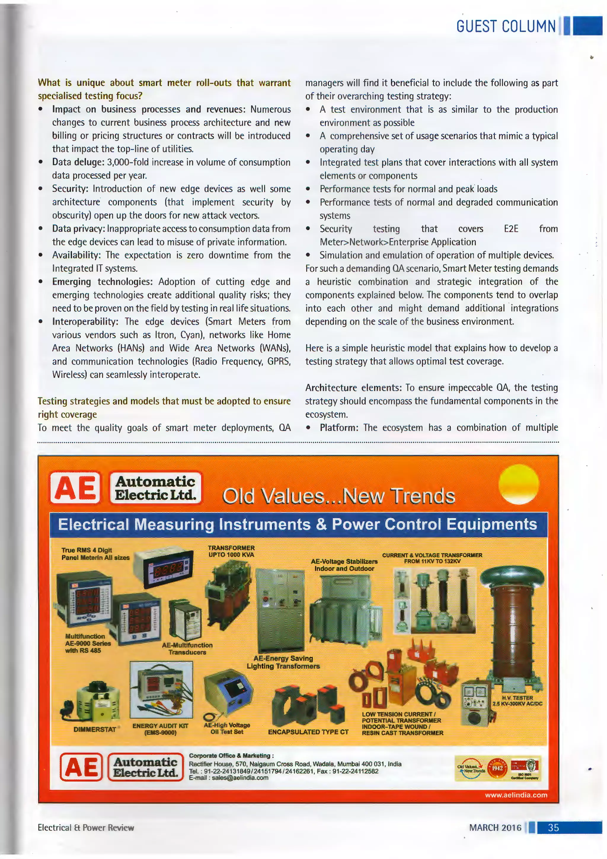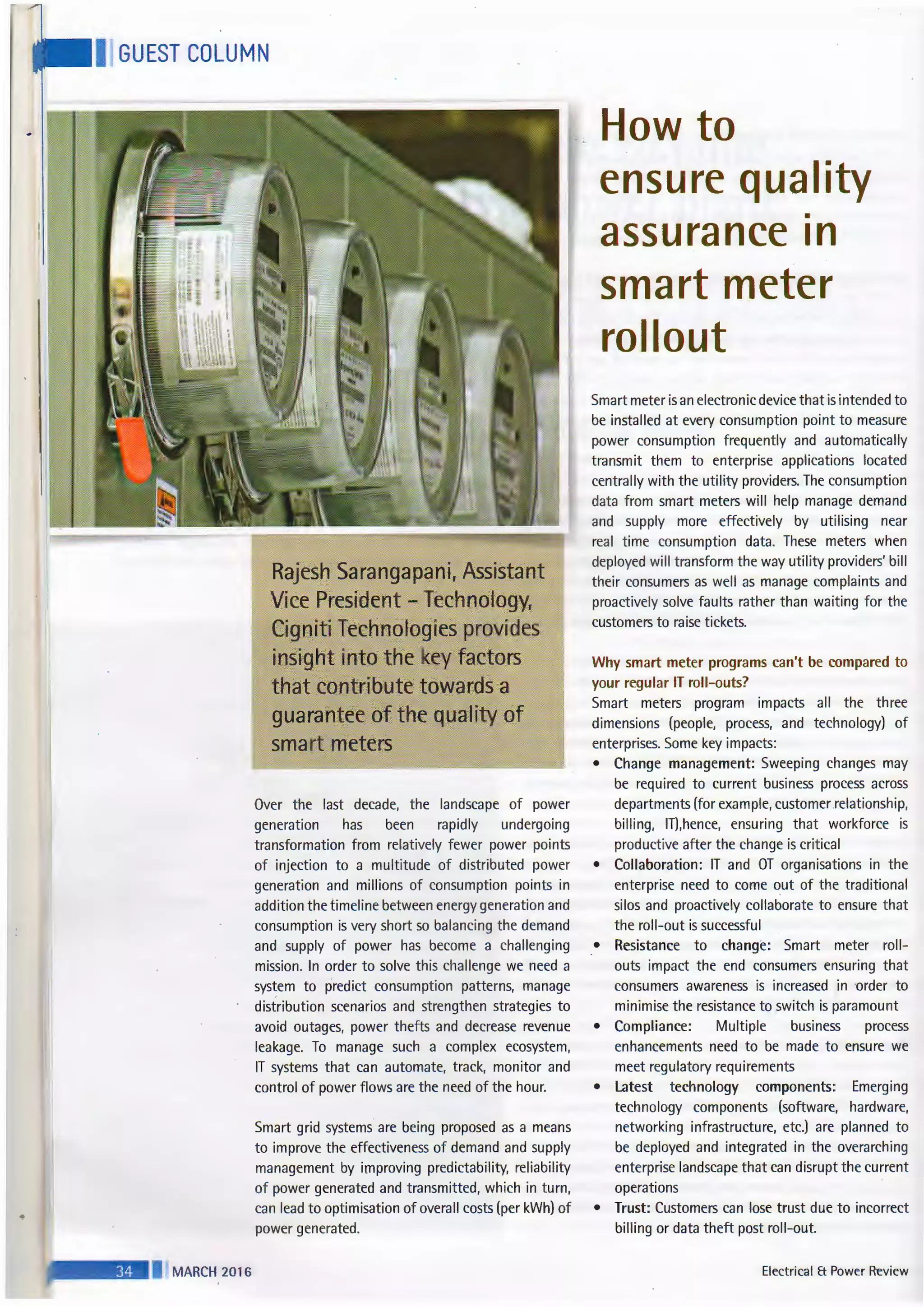 The document discusses strategies for ensuring quality assurance in smart meter rollouts. It notes that smart meter programs impact many aspects of utility companies, including business processes, workforce changes, and adoption of new technologies. Specialized testing is needed due to factors like the large volume of consumption data, new security risks, data privacy issues, requirements for high availability, and use of emerging technologies. The document recommends developing a testing strategy that covers the full system architecture, all quality attributes, and uses techniques like feature testing, workload testing, and an iterative methodology to help ensure a successful smart meter rollout.