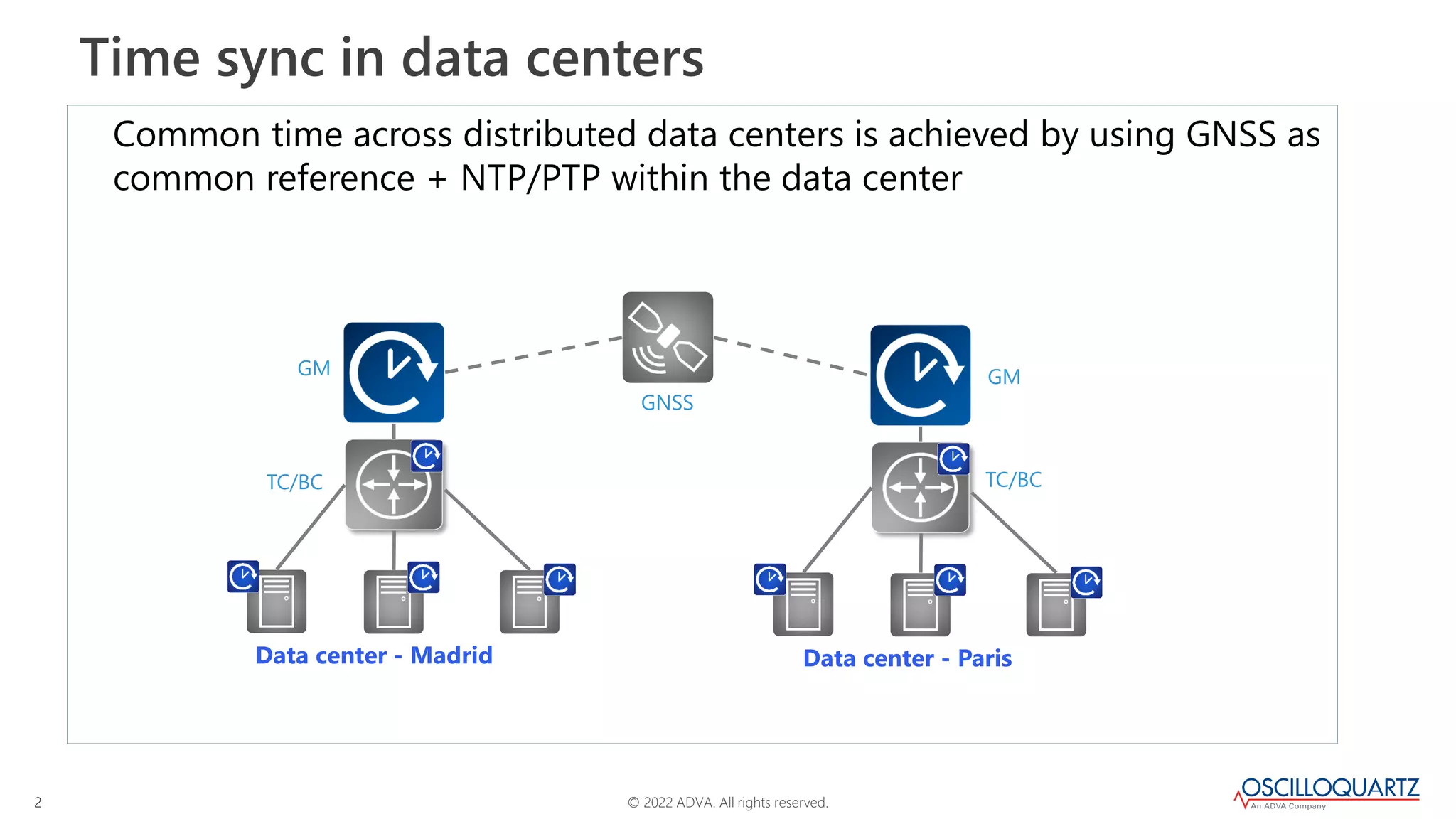 The document discusses the importance of time synchronization in data centers, highlighting the reliance on GNSS for providing common time, along with its vulnerabilities to jamming and spoofing. It proposes the use of EPRTC implementation as a solution for mitigating these risks, achieving sub-100ns time accuracy. Additionally, it introduces GNSS Backup as a Service (GBAAS) to enhance time distribution across extensive networks while ensuring robust synchronization.