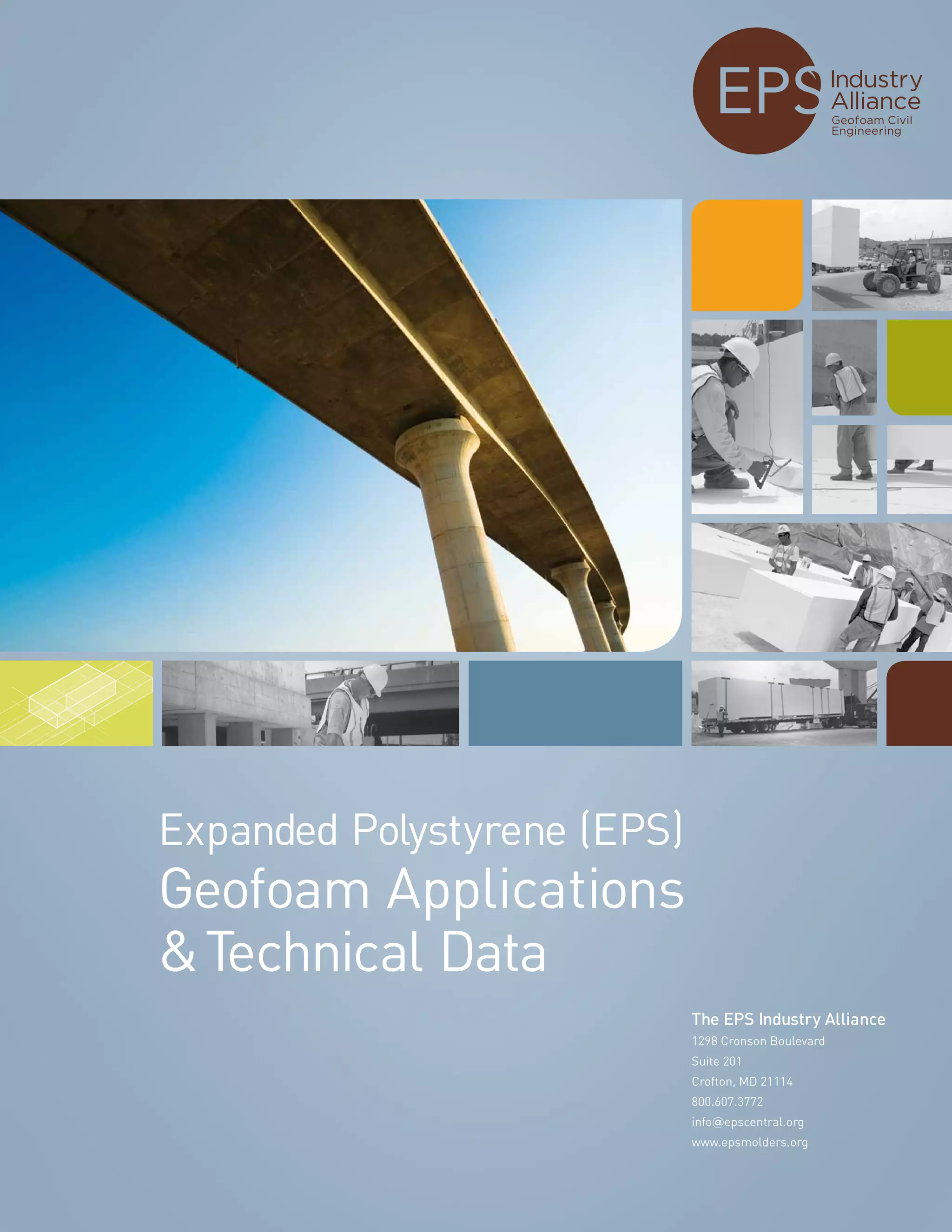 The document provides an overview of expanded polystyrene (EPS) geofoam applications and technical data. It describes 15 common applications of EPS geofoam in construction projects, such as road construction over poor soils, road widening, bridge abutments, slope stabilization, and foundations. It also outlines key design considerations when using EPS geofoam and provides technical specifications and material property data.