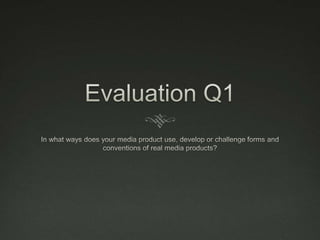 This document discusses the codes and conventions of the thriller genre in film. It outlines conventions for camera work, mise-en-scene, sound, editing, characters, and titles. For camera work, thrillers commonly use tracking shots, close-ups, and low or high camera angles. Mise-en-scene features dark costumes for antagonists, ordinary clothes for protagonists, and low-key lighting. Sound utilizes a slow-building soundtrack to create tension. Editing employs jump cuts, cross-cutting, and continuous shots. Characters typically feature a brave male protagonist and an antagonist seeking revenge. Titles adopt a spooky font.