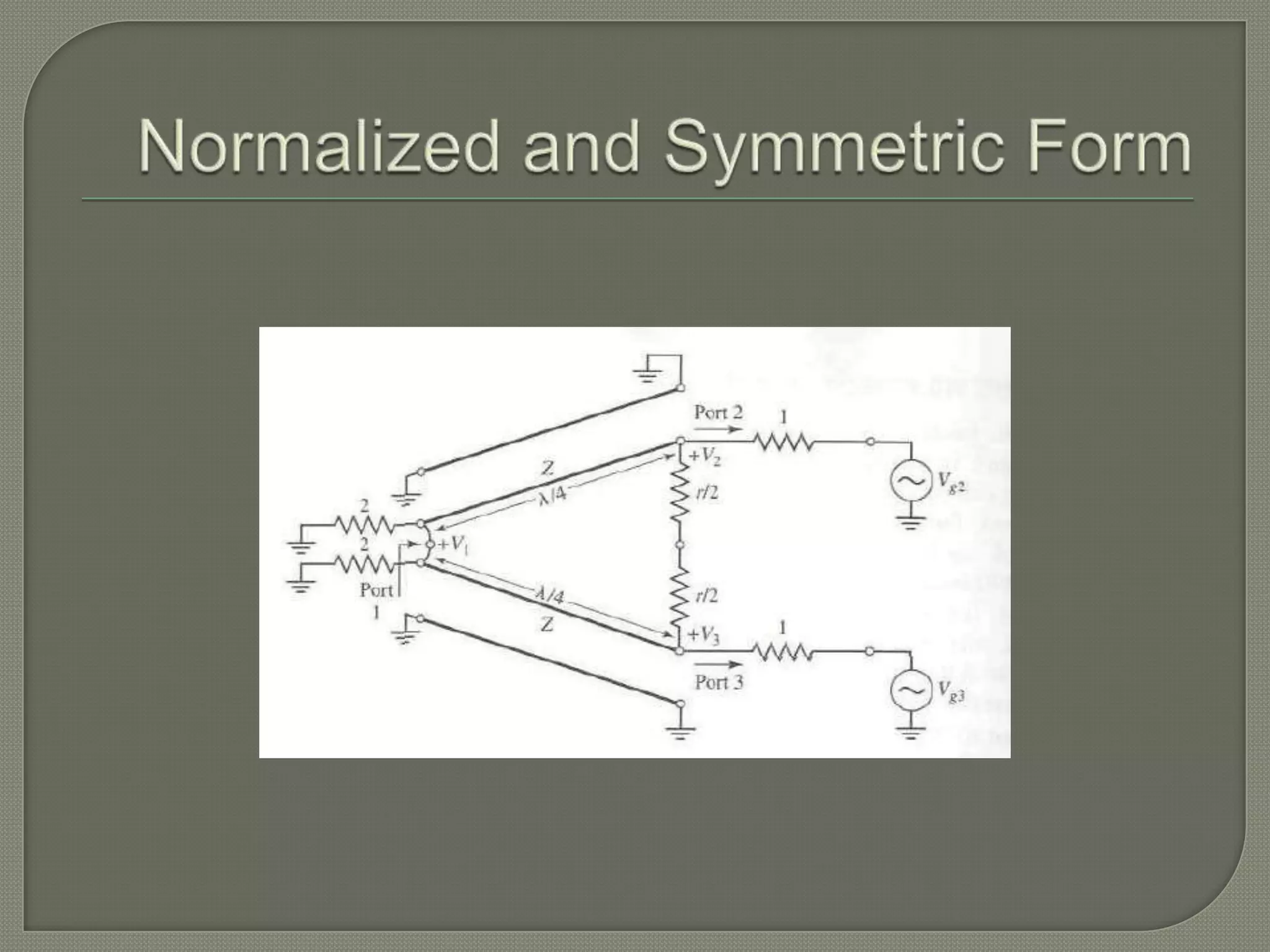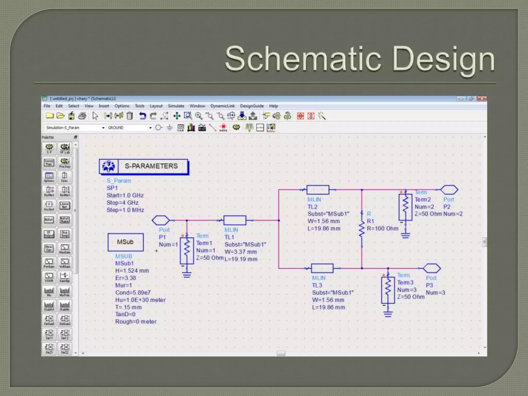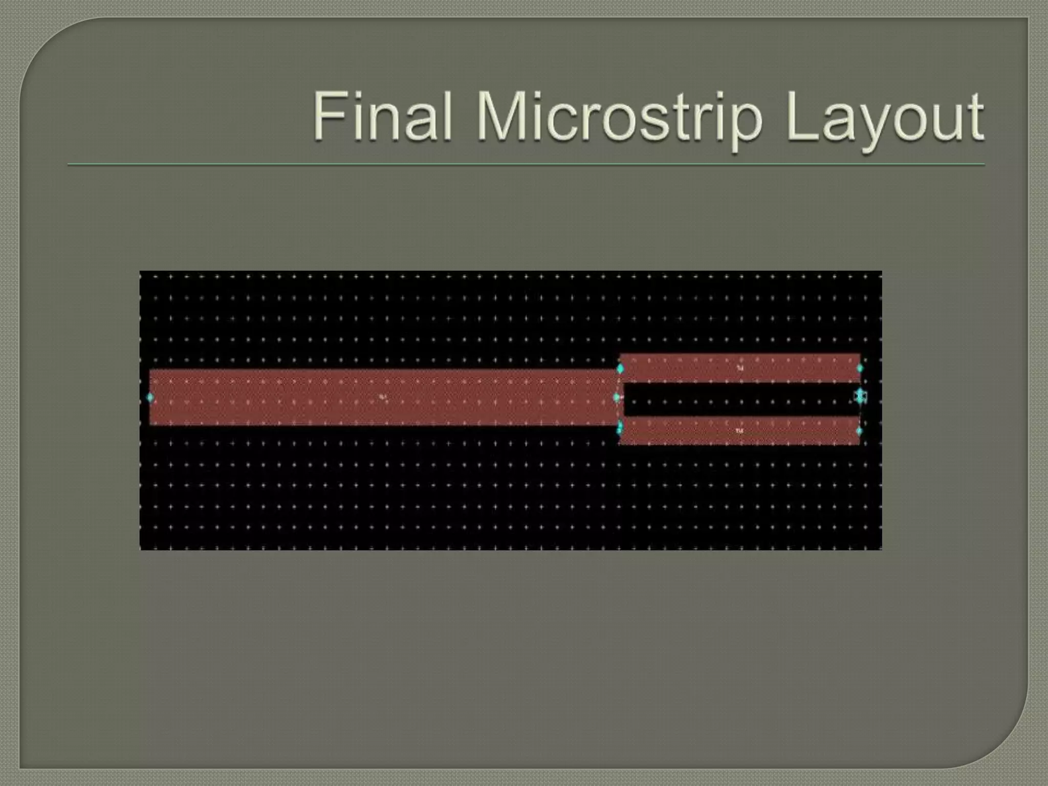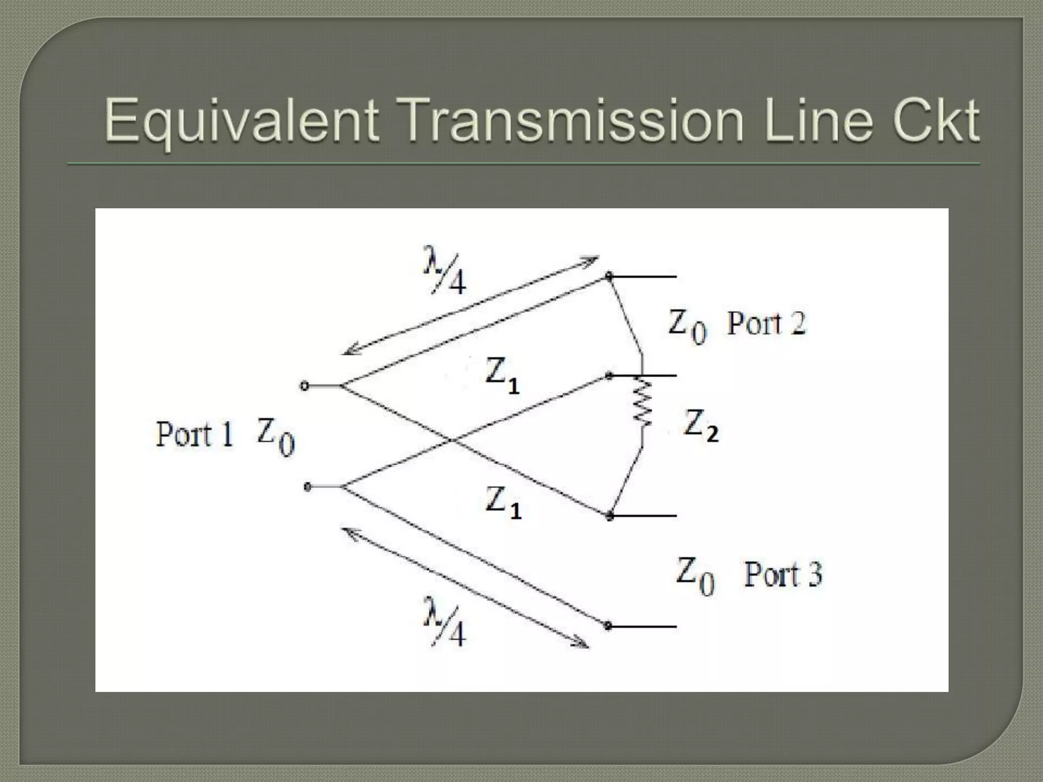 This document discusses power dividers and describes the design of an equal-split Wilkinson power divider. It explains that a power divider splits an input power signal into two or more output signals of lower power. A Wilkinson power divider uses quarter wave transformers to split power in a 3dB ratio. The document then provides specifications for designing a Wilkinson power divider to operate at 2.4GHz using a substrate with permittivity of 3.38 and thickness of 1.524mm. It calculates the impedance values needed for the divider and uses a circuit design tool to calculate the microstrip line lengths and widths.