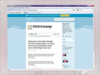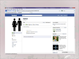 The document discusses ongoing gender inequality issues, highlighting the marginalization of women in political life, wage disparities, and low school attendance for girls in South Asia. It aims to raise awareness and motivate action for gender equality through social media platforms and community engagement. The target audience includes individuals aged 20 to 56, focusing on a universal demographic approach to promote respect and equality between genders.