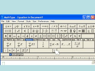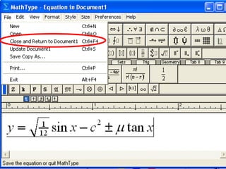 This document discusses equation numbering and referencing in Microsoft Word using MathType. It provides instructions on: