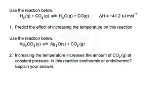 •An increase in pressure will result in the equilibrium shifting in the direction of the