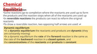•In a dynamic equilibrium the reactants and products are dynamic (they