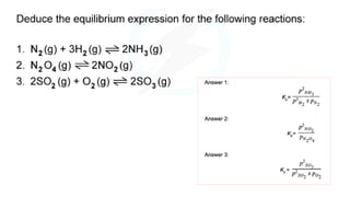 •The units of Kp therefore depend on the form of the equilibrium expression