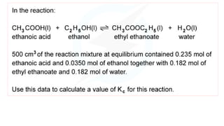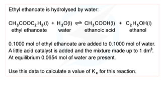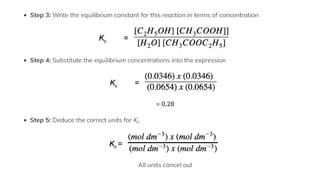 •The units of Kc therefore depend on the form of the equilibrium expression
