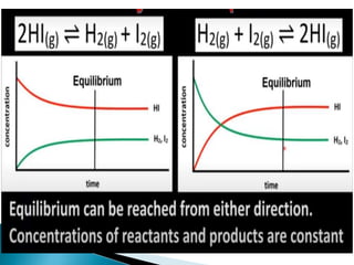 The document discusses the principles of equilibrium in physical and chemical processes, including dynamic equilibrium, the law of mass action, and factors affecting equilibrium such as Le Chatelier's principle. It covers various types of equilibrium such as ionic, solid-liquid, liquid-vapor, and gas-solution equilibria, along with the role of equilibrium constants in reversible reactions. Additional topics include the calculation of equilibrium constants, characteristics of different types of chemical equilibria, and the effects of changes in conditions on equilibrium states.