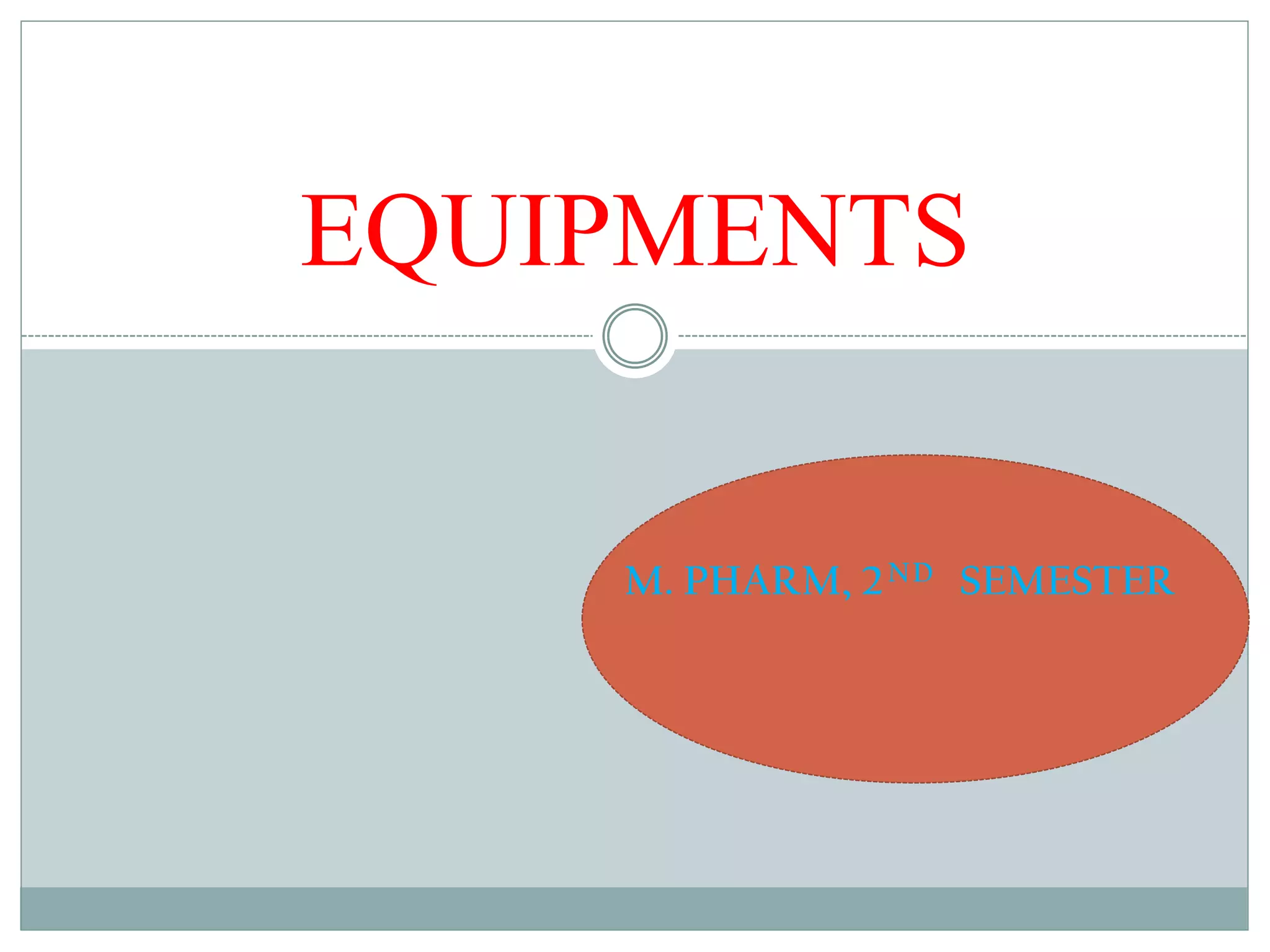 The document discusses the types, management, and maintenance of equipment in pharmaceutical plants according to international GMP standards. It covers aspects such as equipment life cycles, installation, cleaning, qualification, and the importance of proper labeling to minimize contamination risks. Additionally, it outlines guidelines for the operation and maintenance of equipment like weighing balances and filtration systems.
