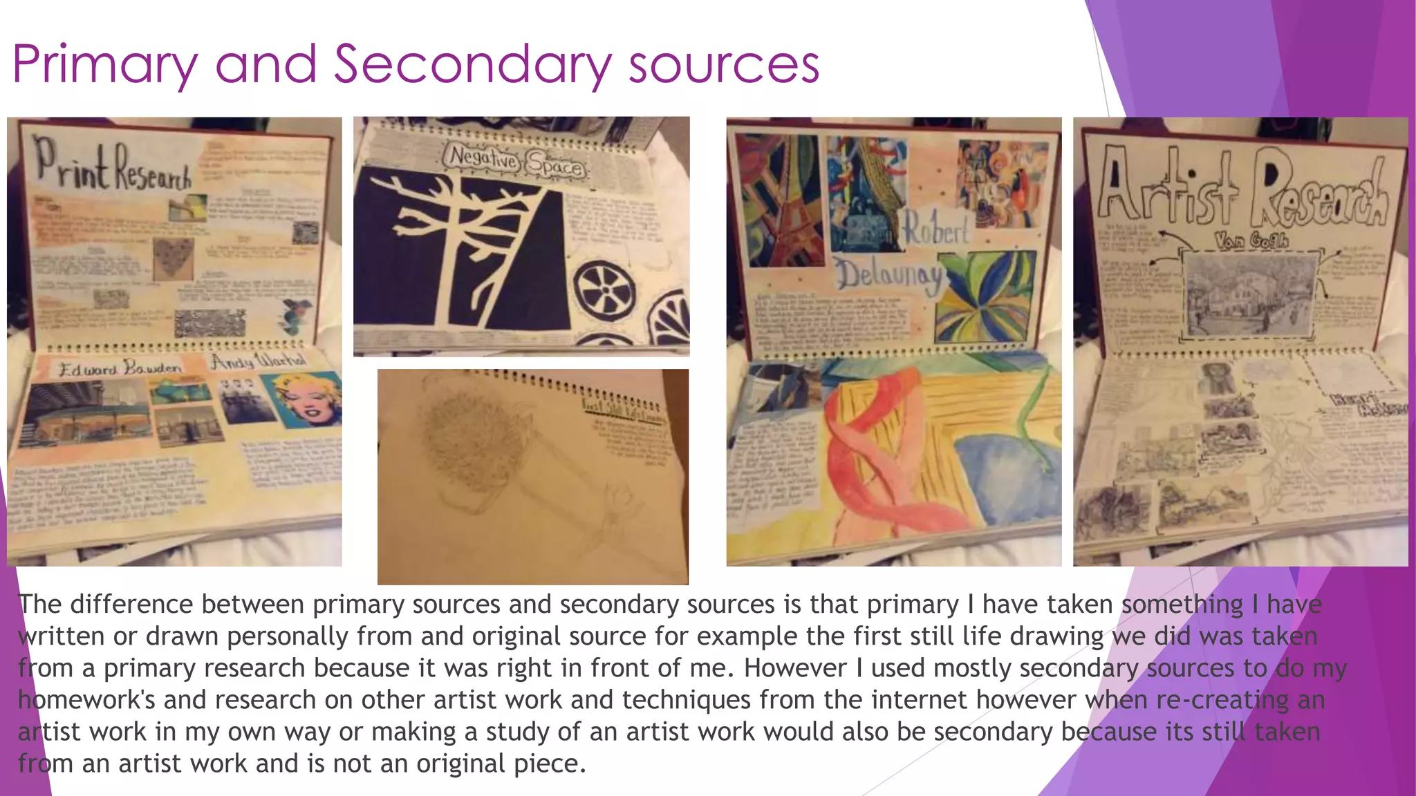 The document discusses primary and secondary sources, formal elements, materials and techniques used in The Equivalents Project. Primary sources are original works directly observed, while secondary sources refer to existing works by other artists. Formal elements like tone, composition and texture were important to consider when creating still life drawings and sculptures. A variety of materials were used including ink, charcoal, cardboard and paint to create textures and tones. Safety precautions must be followed when using equipment and materials in the workshop.