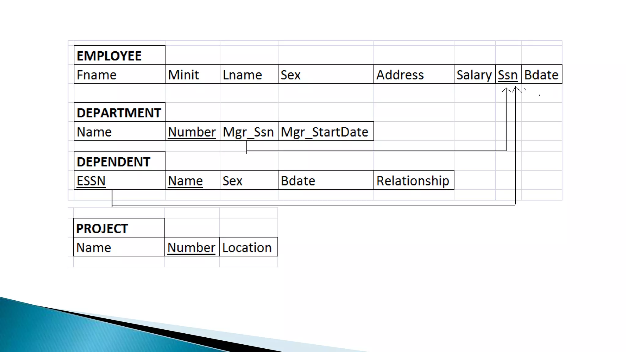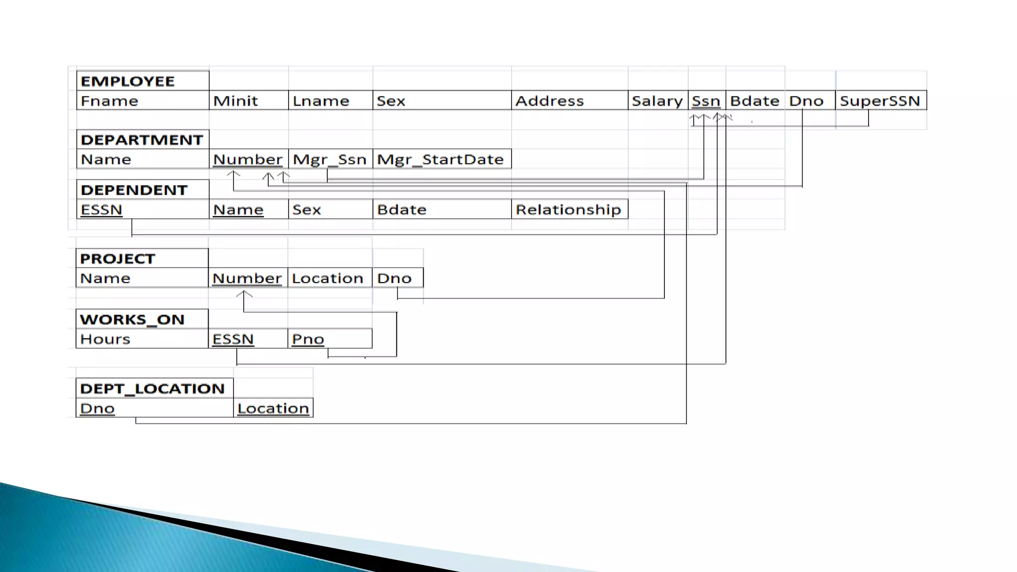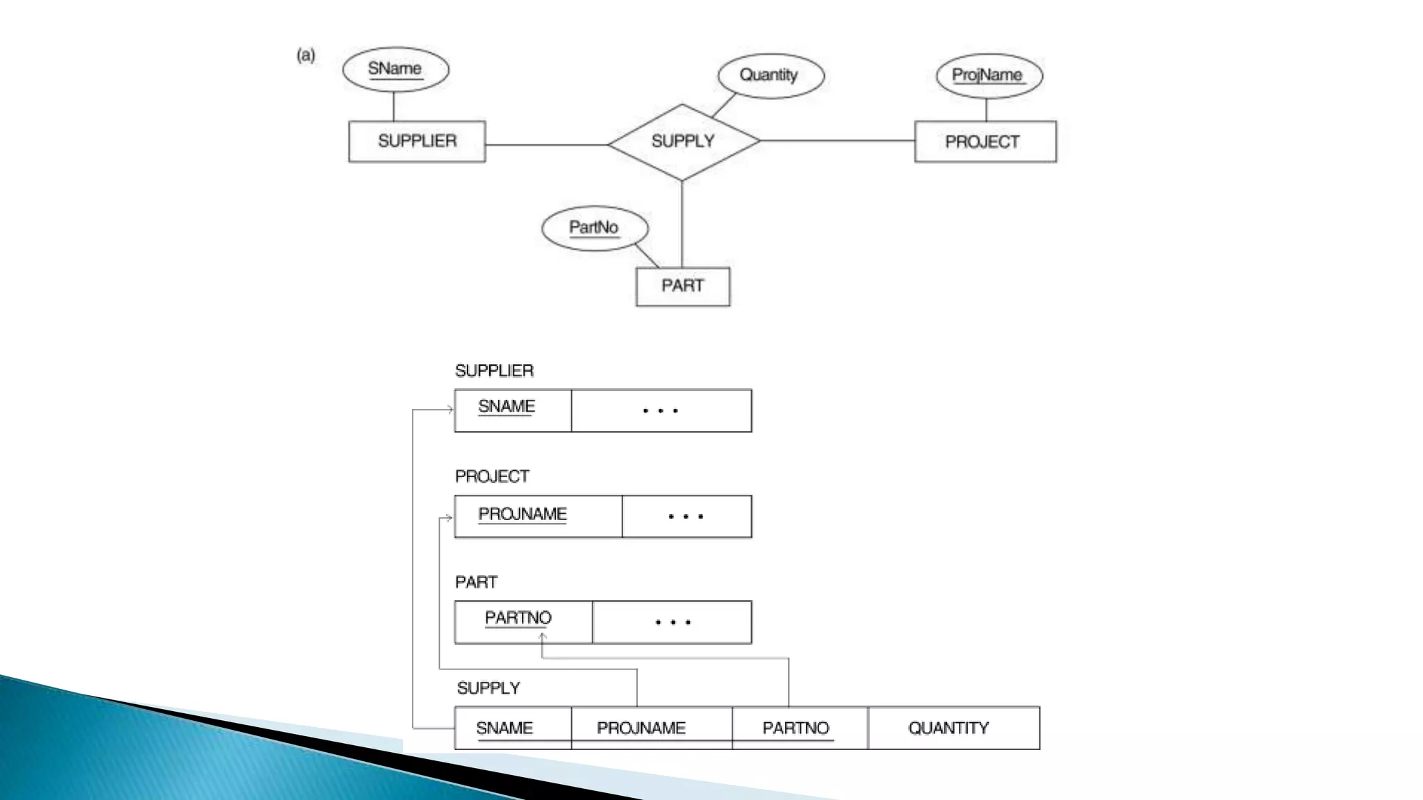 The document outlines a 7-step process for mapping an entity-relationship (ER) schema to a relational database schema. The steps include mapping regular and weak entity types, binary 1:1, 1:N, and M:N relationship types, multivalued attributes, and n-ary relationship types to tables. For each type of schema element, the document describes how to represent it as a table with primary keys and foreign key attributes that preserve the relationships in the original ER schema.