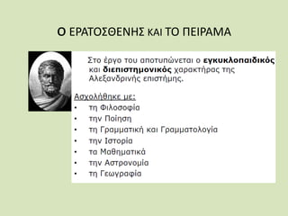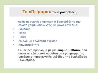 βήματα και τους συλλογισμούς του μεγάλου πανεπιστήμονα Ερατοσθένη,
