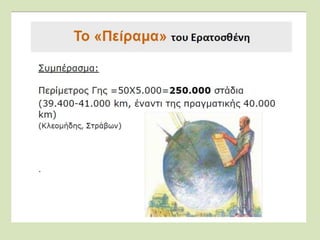 Η περιφέρεια της Γης υπολογίστηκε ίση με 40000 Km. (σήμερα