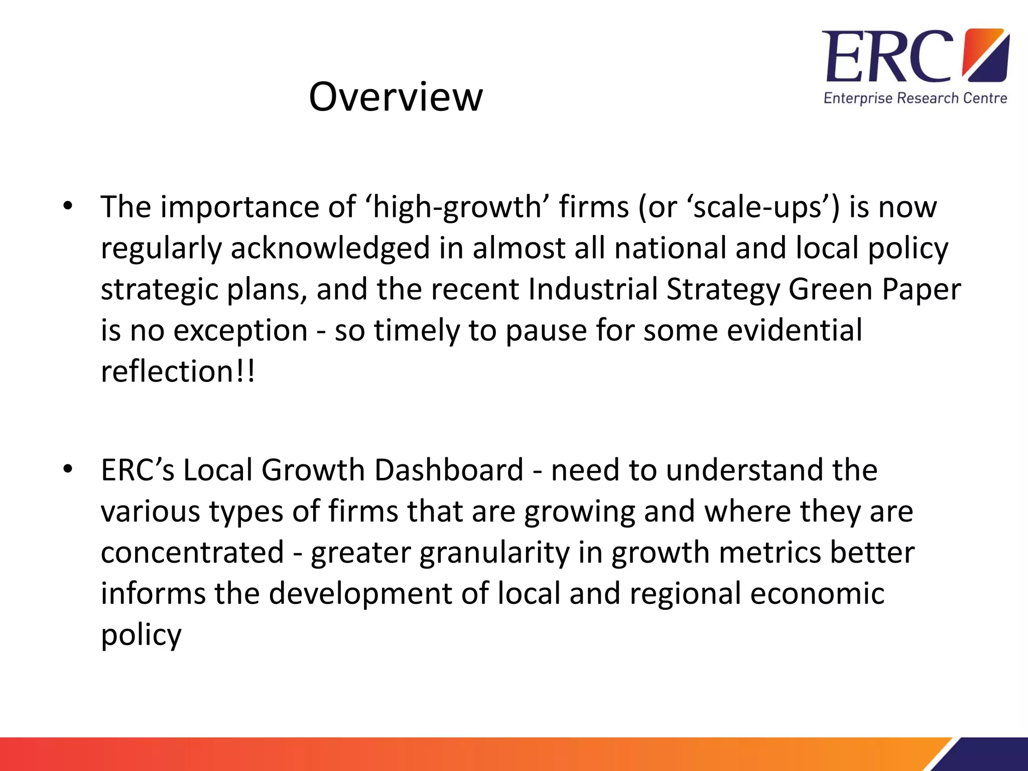 The document discusses the significance of high-growth firms (HGFs) and their role in job creation and economic policy, emphasizing the limitations of the OECD definition of HGFs. It presents new analyses of job creation in the UK, comparing different categories of high-performing firms and highlighting that most job growth occurs within the first five years of startups. The findings suggest a need for more localized economic policies that reflect the realities of diverse business dynamics rather than focusing solely on HGFs.