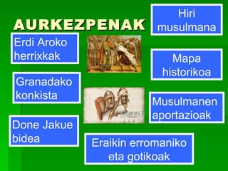 AURKEZPENAK Erdi Arokoherrixkak Granadako konkista Done Jakue bidea Hiri musulmana Mapa historikoa Musulmanen aportazioak Eraikin erromaniko eta gotikoak