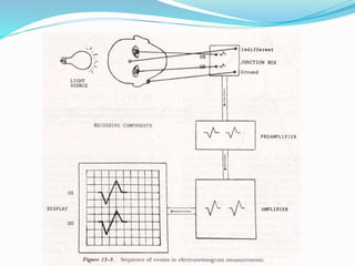 This document provides an overview of electroretinography (ERG), including: