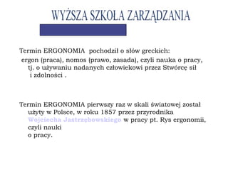 Termin ERGONOMIA pierwszy raz w skali światowej został