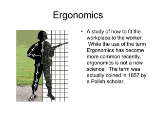 1. Ergonomics is defined as fitting the work to the worker in order to reduce musculoskeletal disorders.