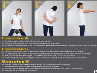 Ergonomics aims to optimize human well-being and system performance through understanding interactions between humans and other elements. Dentists face musculoskeletal disorders from uncomfortable postures during work. Occupational diseases are increasing, with musculoskeletal disorders among the most common due to improper ergonomics. Applying ergonomic principles can help reduce risks like static postures and muscle imbalances while increasing productivity, safety, quality and decreasing fatigue through measures like maintaining good posture, alternating tasks, and adjusting equipment height.