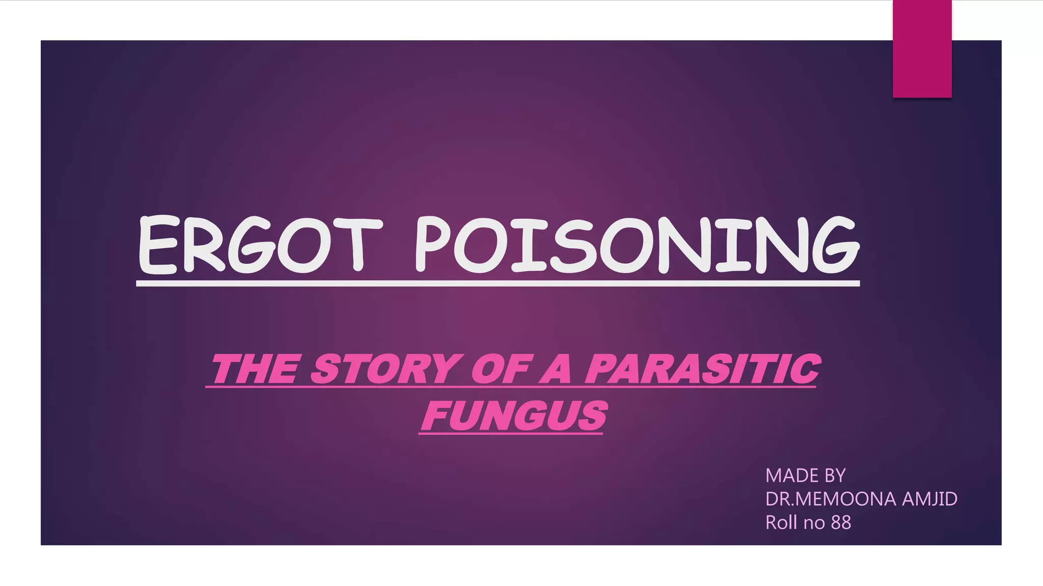 Ergot poisoning is caused by consuming grains contaminated with the parasitic fungus Claviceps purpurea, known as ergot. The fungus replaces grains with hard black sclerotia containing ergot alkaloids that act as vasoconstrictors or serotonin agonists. Historically, ergotism or "St. Anthony's Fire" was common from eating contaminated rye and caused either gangrenous or convulsive symptoms due to restricted blood flow or muscle spasms. Treatment focused on removing the alkaloids from the body since there is no antidote. While ergot alkaloids can be used to induce childbirth or treat migraines, they were also misused as abortifacients