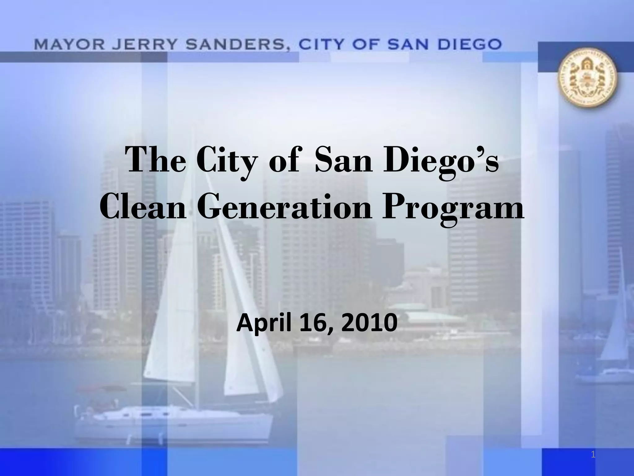 The City of San Diego is launching a Clean Generation Program to allow property owners to finance renewable energy and energy efficiency upgrades through loans repaid via their property tax bills. The program will be administered by Renewable Funding and the California Center for Sustainable Energy. It offers $20 million in funding at a competitive 8.75% APR over 20 years. Eligible upgrades include solar, energy efficient appliances and insulation. The program aims to create jobs, demonstrate leadership in sustainability and reduce greenhouse gas emissions.