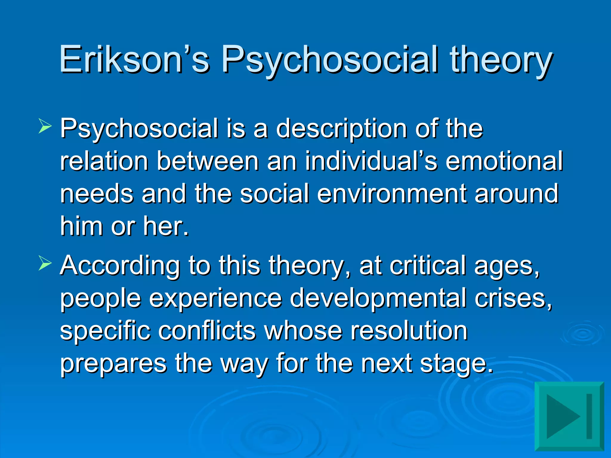 Here are definitions for some of the key terms from Erikson's psychosocial theory of development: