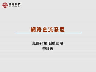紅陽科技副總經理李鴻鑫討論了金流發展的歷史,涵蓋了從2000年到2014年的重大事件和法規變更,特別是網路金流及電子支付的相關規定。文中提到的創新應用包括IVR刷卡和行動支付等技術。整體上,該文檔強調了網路交易及支付平台在市場上的重要性和變革。