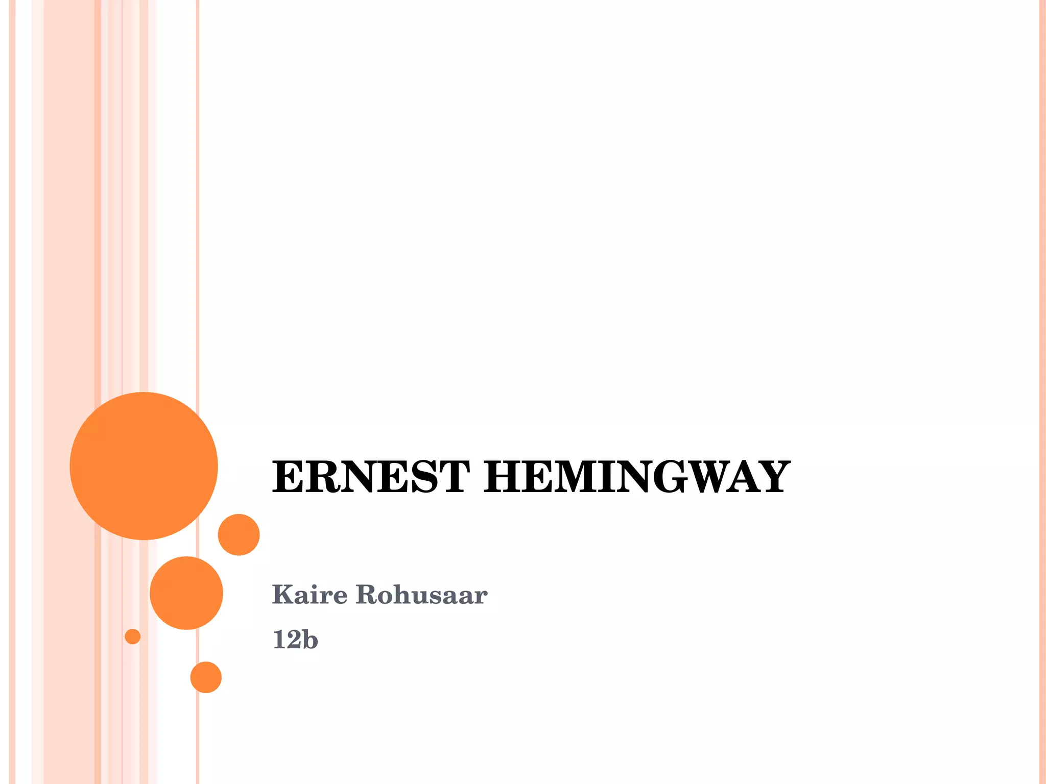 Ernest Hemingway was born in 1899 in Oak Park, Illinois. He worked as a reporter and ambulance driver during World War I. His first novel, The Sun Also Rises, was published in 1926 and established his style of understated prose. Hemingway married four times and lived in various places including Paris, Key West, and Cuba, drawing inspiration from his experiences. He won the Pulitzer Prize and Nobel Prize for Literature and committed suicide in 1961.
