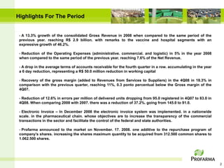 - Recovery of the gross margin (added to Revenues from Services to Suppliers) in the 4Q08 in 18.3% in