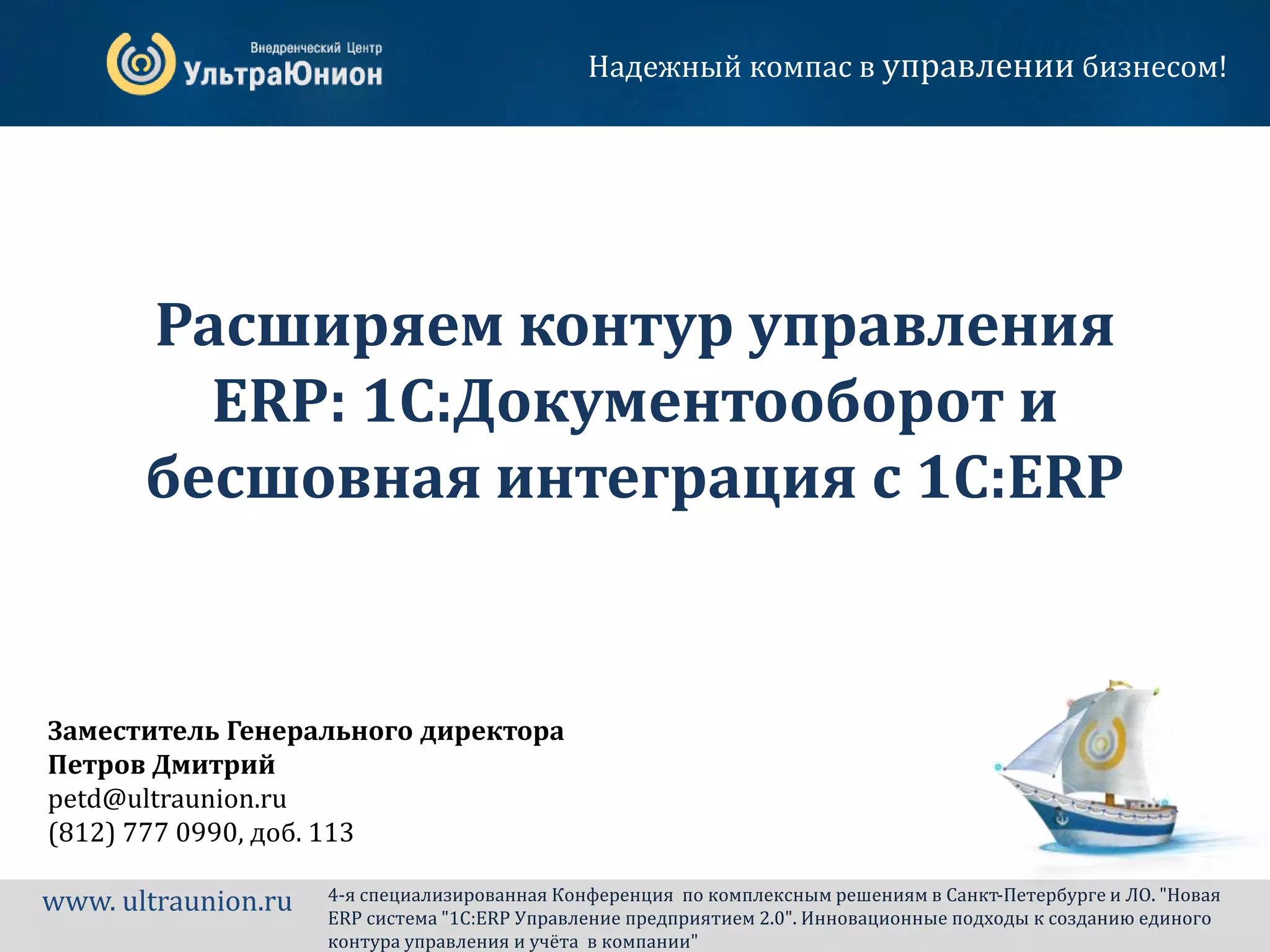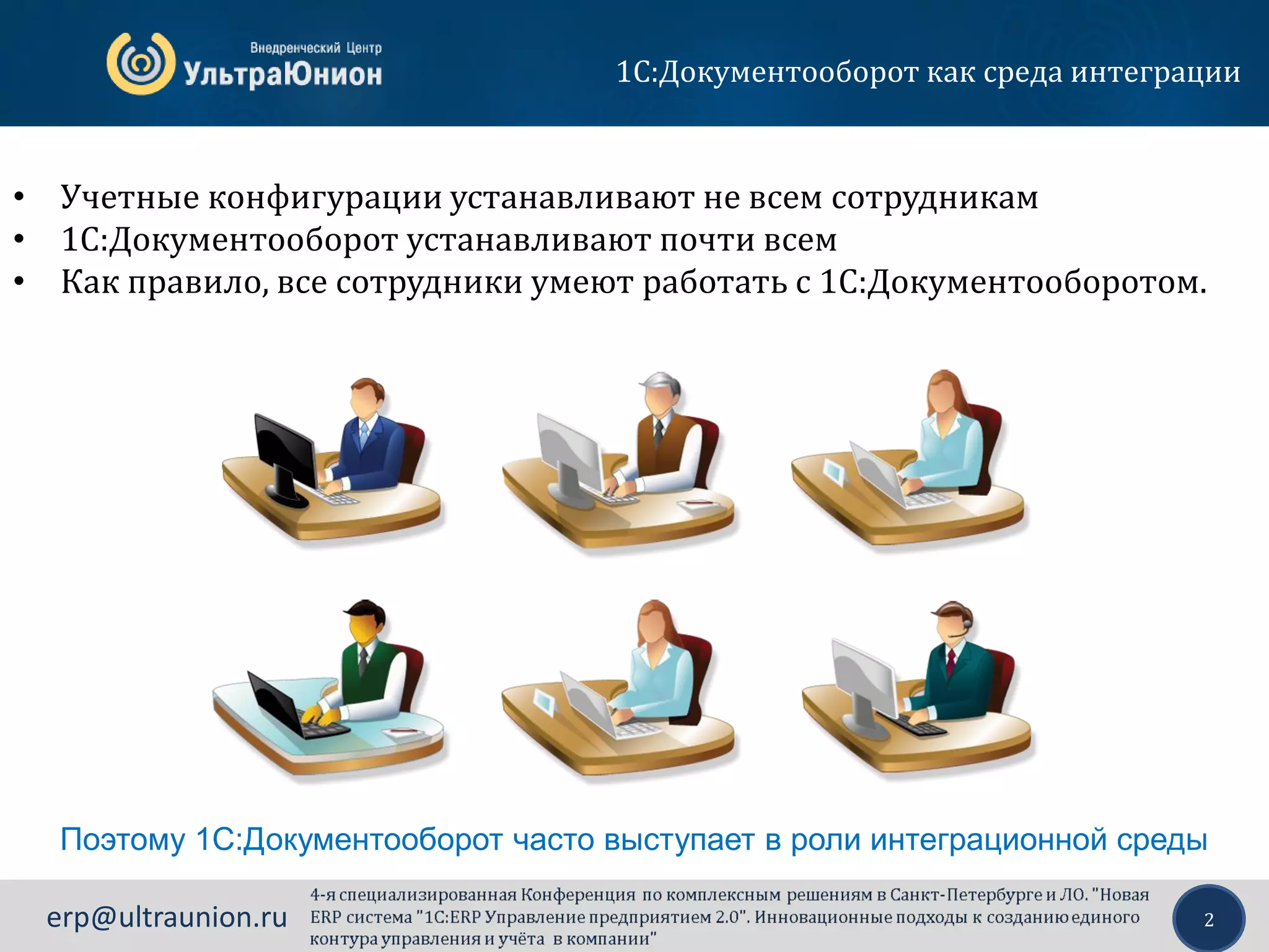 Документ представляет собой описание расширения ERP-системы 1С для управления документооборотом и интеграции с другими приложениями, что обеспечивает бесшовный обмен данными и улучшает учет в компании. В нем также указаны преимущества единой платформы, планы по развитию системы и механизмы интеграции, позволяющие оптимизировать процессы и снизить затраты. Кроме того, предложены рекомендации по настройке интеграции для эффективного использования всех возможностей систем.