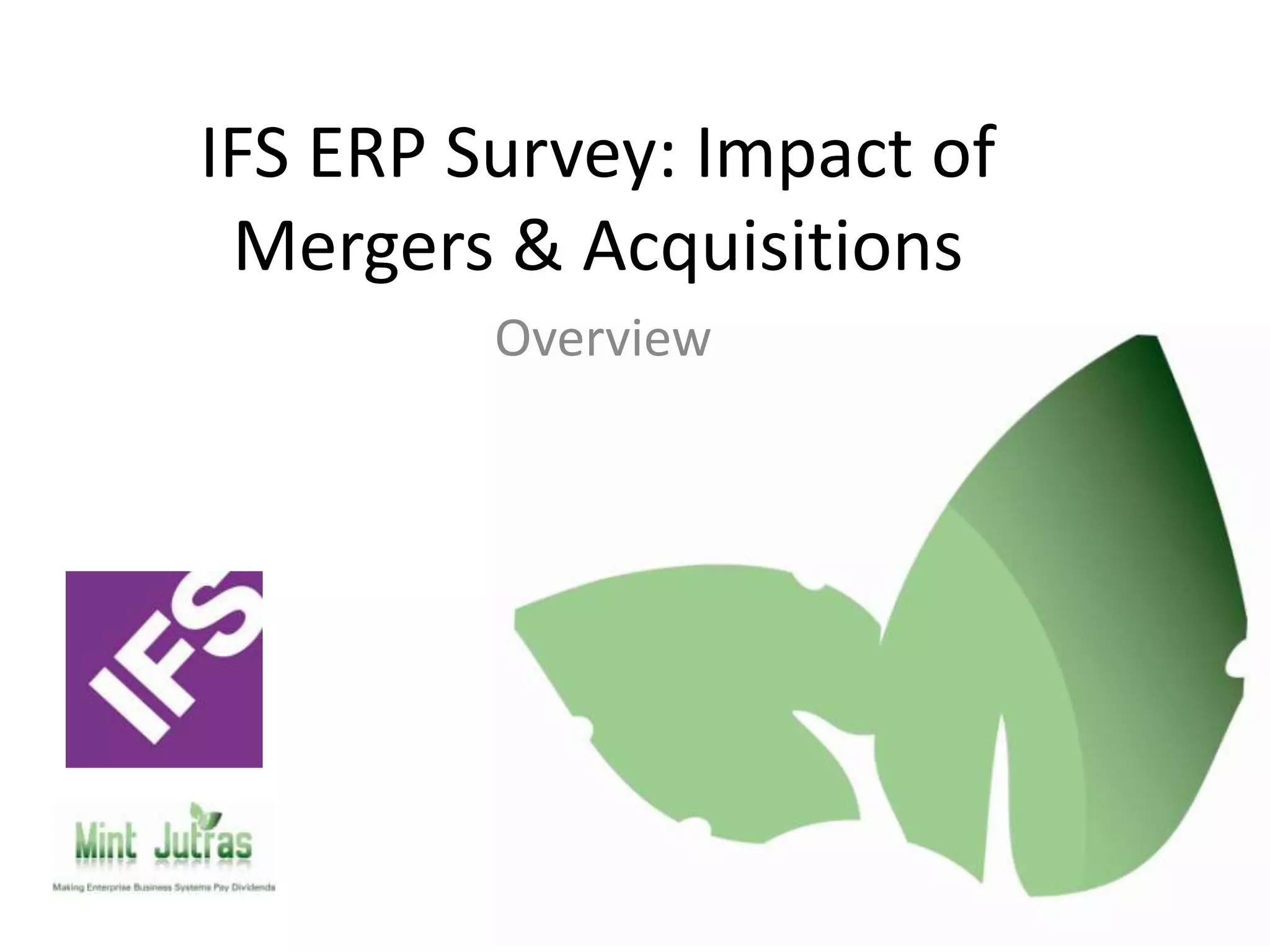 A 2011 survey conducted by IFS North America examined the impact of mergers and acquisitions on customers in the manufacturing sector, revealing that 54% of respondents had experienced an acquisition of their software vendor. Key concerns included the ongoing support and innovation for acquired products, with many customers continuing to use the software despite changes in ownership. The survey highlights the motivations for acquisitions, such as increasing market share and customer wallet share, while identifying both potential benefits and drawbacks from a customer perspective.