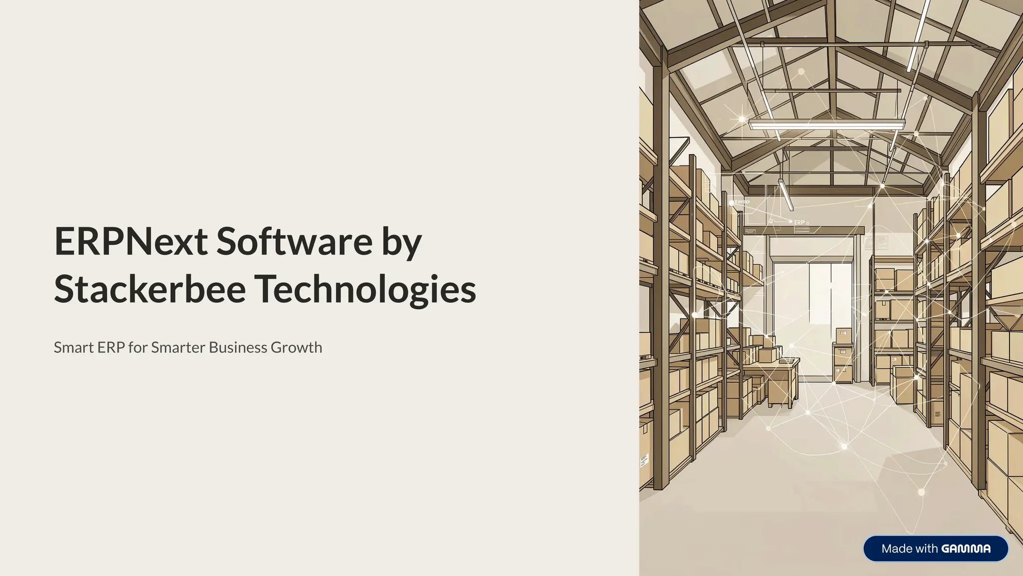 This presentation highlights how ERPNext, implemented by Stackerbee Technologies, helps businesses streamline operations, improve visibility, and drive growth. It covers key ERPNext features, core modules, business benefits, and Stackerbee’s structured implementation approach. Designed for growing enterprises, this PPT explains how a unified ERP system can automate processes, reduce costs, and support scalable, data-driven decision-making.