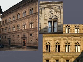 Berpizkundeko arkitektura Cuattrocento: Michelozzo Arkitekto honek Medici familiako patronatuan lan egin zuen eta bere eraikuntzarik famatuena Palazzo Medici Riccardi da. Beranduago Villa Medici Fiesole -n eraiki zuen. Berpizkundeko estiloan Italiatik kanpo lan egin zuen lehen artistenetako bat da. Palazzo Medici Riccardi klasikoa da detailetan eta bere leihoak frontoiekin eta ate sartuekin, baina bere zutabeetan ez zuen ordenarik erabiltzen, Brunelleschi edo Alberti bezala. Honen partez, Michelozzo-k harri zarpailenak errespetatu zituen. Hiru maila erabiltzen zituen, bakoitza eskema bat jarraituz eta eraikuntza amaitzen zen Erromatar estiloko erlaitza batez, asko proiektatzen zela (2,5 metro).