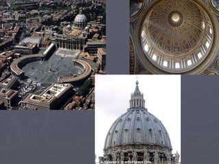 Berpizkundeko arkitektura Manierismoa:Michelangelo San Pedroko kupula diseinuko maisu-lan bat izan zen, bi azalak erabiliz, bat bestearen kanpotik eta dena koroatuz linterna handi batez, Florentzian bezala, bere nerbioekin. Kanpoaldean orden digantea erabili zuen, eta elementu guztiak elkartu zituen erlaitza handi batez eraikuntza osotik zabaltzen dela. Liburutegi Laurentzianoa: Eraikuntza baxu eta luzea da, egurrezko sabaia duela. Argiz beteriko gela bat da, pilastren artean agertzen diren leiho ugariekin. Bestibulua, bestaldetik, altua da, eta eskailera bat dauka liburutegira eramateko. Hiru besoak ditu eta balaustrada oso landua. Eskailera ikaragarria da, batez ere erdiko parteko eskailerak altuera handiagoa dutelako alboetakoak baino.