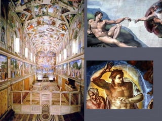 Berpizkundeko pintoreak MichelangeloBere irudiak era eskultoriko batean egiten dira, garrantzi handiz Mugimenduz beteriko irudiak Ezaugarri nagusia: terribilitá Kolore aberatsak, argiak orokorki Lanak: Sixtina Kaperako sabaia, Azken Epaiketako panela, Tondo Doni