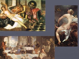 Manierismoko pintoreak CorregioDotoretasuna, sfumato biguna eta xarmaz beteriko keinu intentzionalak Mitologia sentsualak, Benusak bezala Tintoretto Beroz beteriko irudiak Argia eta itzalaren efektuak Izakiaren kontzepzio kolosala baina dotoretasunez beteta