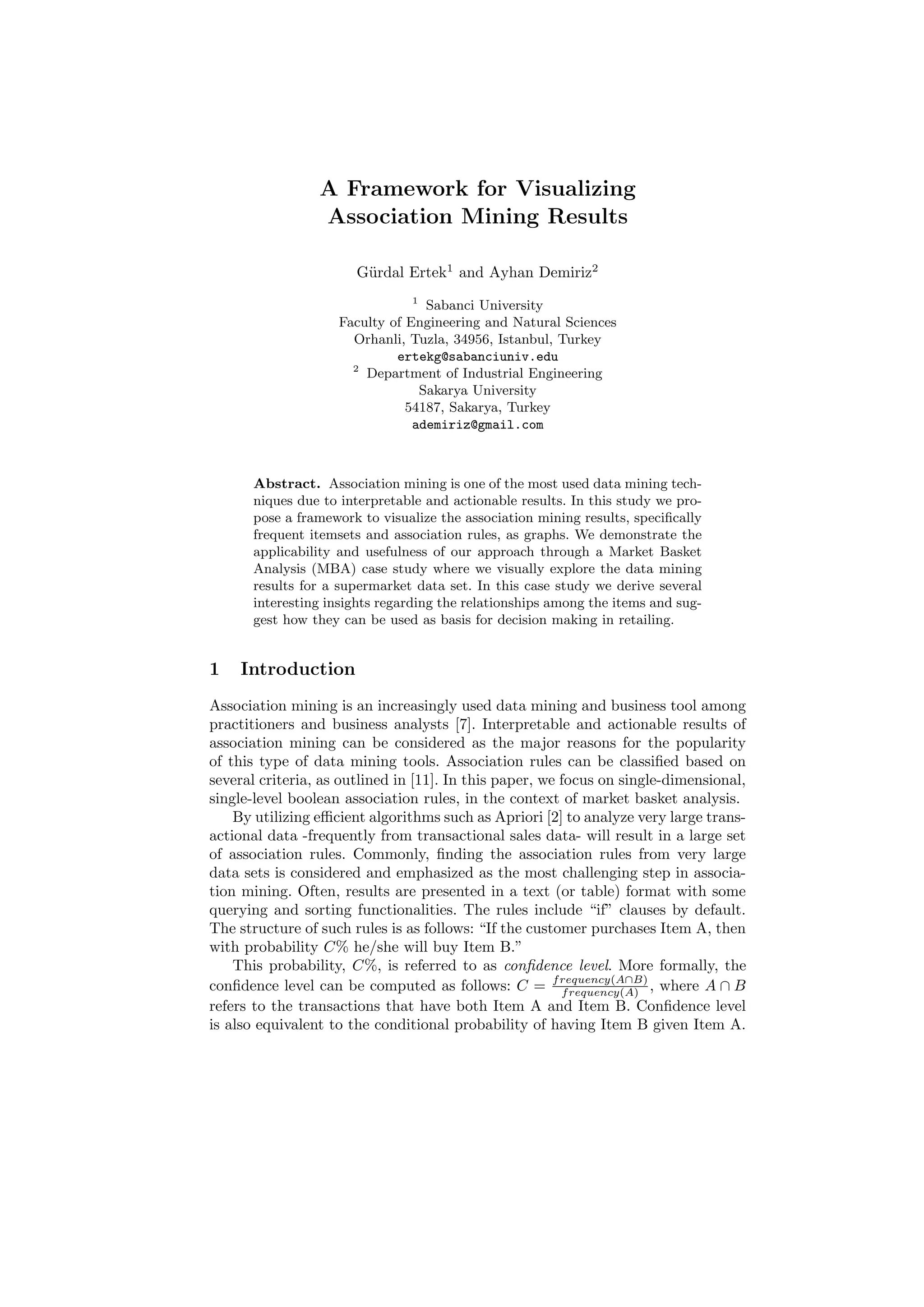 The document presents a framework for visualizing association mining results using graphs, specifically through frequent itemsets and association rules. It emphasizes the importance of visualization in extracting insights from data mining, demonstrated through a case study of market basket analysis in a Belgian supermarket dataset. The proposed graph-based approach aims to aid decision-making in retail by providing an interpretable and user-friendly representation of associations among items.