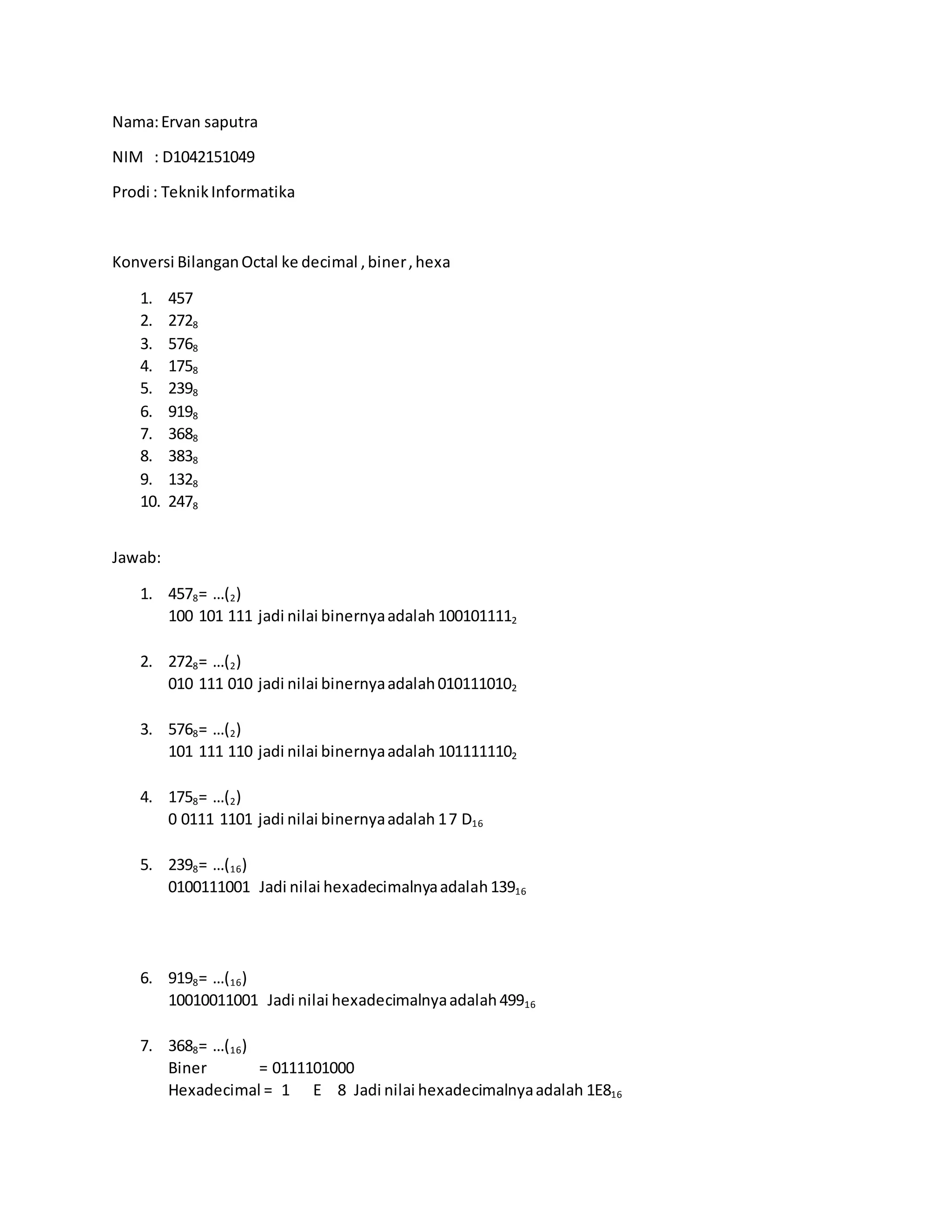 Konversi BilanganOctal ke decimal ,biner,hexa