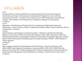 Entrepreneurship involves organizing and managing resources and assets to create value and bring innovations to the market. Entrepreneurs play a key role in economic development by identifying opportunities, taking risks to launch new businesses, and creating employment. They bring resources together in new combinations to increase value and introduce changes. More entrepreneurs means more innovations and economic growth. Entrepreneurs are classified in various ways, such as by timing of starting their venture, type of business, use of technology, motivations, growth levels, and stage of development.